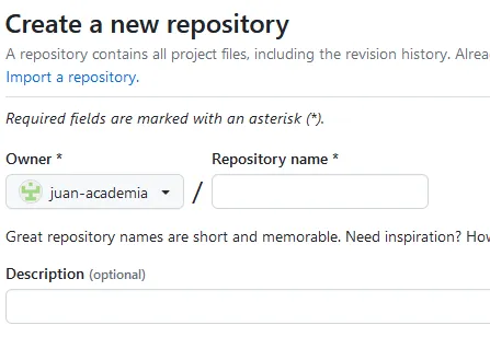 En primer lugar, figura el propietario (Owner) del repositorio. En este caso aparecerá nuestra cuenta actual.