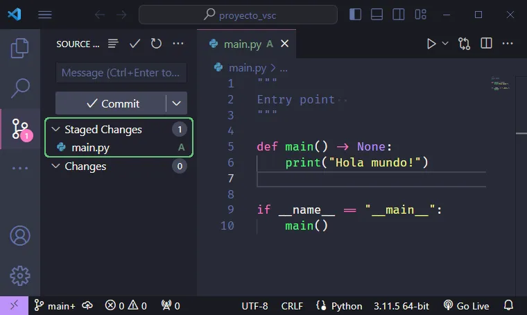 Si abrimos VS Code en un directorio que ya contenía un repositorio, VS Code lo va a detectar inmediatamente.